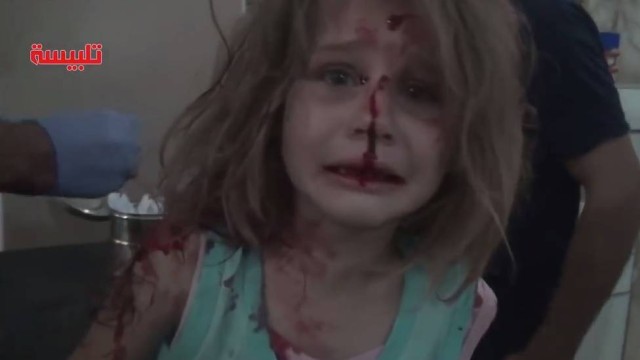Um vídeo publicado pela emissora de TV árabe “Al Arabiya” mostra o momento chocante em que uma garotinha tenta, desesperadamente, encontrar seu pai em uma cidade Síria, enquanto membros de uma equipe de resgate tentam acalmá-la, limpando seu rosto sujo de sangue.