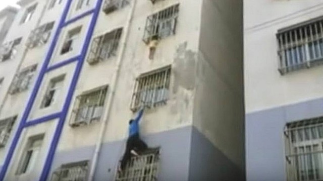 Um jovem escalou um prédio sem qualquer equipamento de segurança para salvar a vida de um bebê que ficou preso pela cabeça nas grades de proteção de uma janela de seu apartamento, em Liaocheng, na China. Um vizinho gravou em vídeo toda a ação. O caso aconteceu na última quinta-feira. As informações são do jornal “The Sun”.