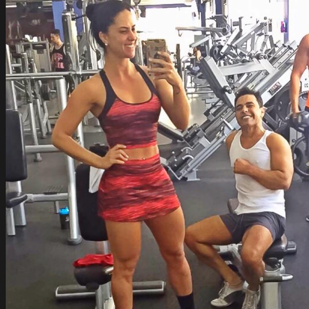 Graciele Lacerda e Zezé Di Camargo não deixaram de malhar neste feriado de quarta-feira, 2. A namorada do cantor postou uma foto no Instagram, na qual aparece de minissaia, exibindo seus coxões em uma acdemia de ginástica. E tirou onda com o sertanejo: