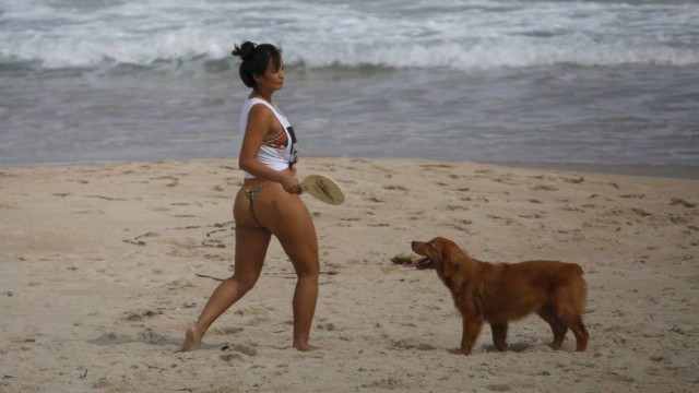 A dúvida é saber quem mais bate um bolão. Carol Nakamura e o zagueiro do Vasco Aislan Lottici exibiram seus corpos perfeitos no fim de tarde na Praia da Barra, na Zona Oeste do Rio. O casal jogou frescobol e se divertiu com seus três cachorros. Juntos há um ano, eles já se consideram praticamente casados.