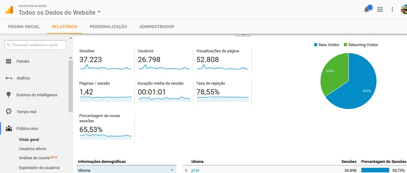 O Google Analytics é, inclusive, padrão para definição de publicidade on-line. Pela indicação das últimas semanas (veja quadro acima, com o total de acessos do período diario e mensal), o Google Analytics mostra que, nos últimos meses, o Portal Santa Rita Verdade teve mais de 1 milhão e meio de acessos, o que dá uma média diária de 50.000 acessos!
