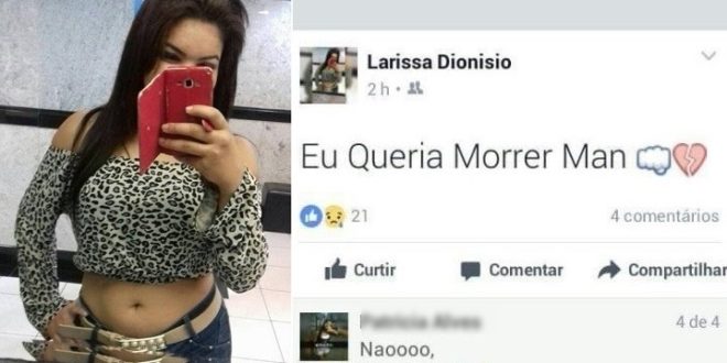 A adolescente Larissa Beatriz Dionísio de Morais sofreu um acidente fatal na noite de quarta-feira (23), em São Gonçalo do Amarante, na região metropolitana de Grande Natal (RN). Horas antes, ela havia usado seu perfil no Facebook para postar: “Eu queria morrer man” (sic).