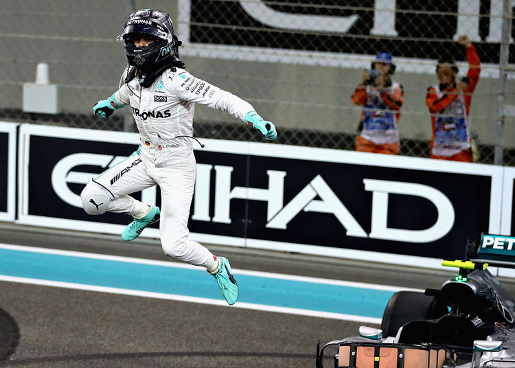 ABU DHABI, UNITED ARAB EMIRATES - NOVEMBER 27: Nico Rosberg of Germany and Mercedes GP celebrates after finishing second and winning the World Drivers Championship during the Abu Dhabi Formula One Grand Prix at Yas Marina Circuit on November 27, 2016 in Abu Dhabi, United Arab Emirates. (Photo by Clive Mason/Getty Images)