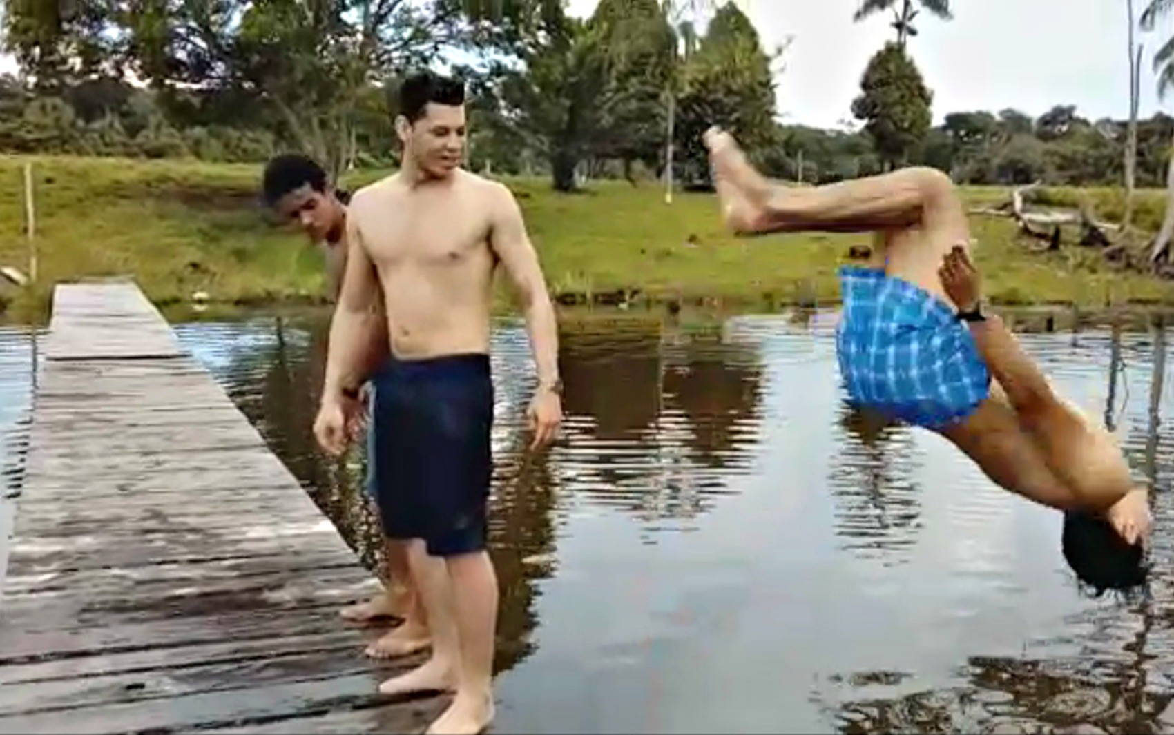 Um vídeo mostra o salto dado pelo estudante de enfermagem Adelvanir Pereira Alves, de 23 anos, pouco antes de morrer. Ele morreu após passar mal, momentos depois de dar um salto mortal e mergulhar de uma ponte em um açude em que brincava com amigos, na Vila Pentecostes, em Cruzeiro do Sul, interior do Acre. O caso ocorreu no domingo (27), o jovem morreu no local.