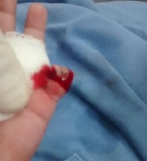 Kauan levou pontos e não deve passar por cirurgia de reconstrução. “Explicaram que o corte foi muito profundo, pegou quase o dedo inteiro e, por isso, não dá para fazer reconstrução. Vai ter que ficar assim, amputado”, relatou.