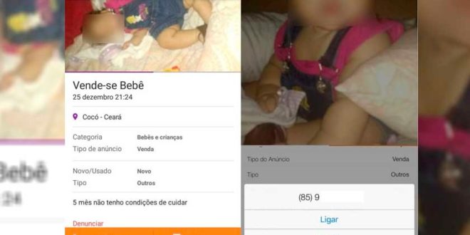 Além do texto – “Vende-se bebê. 5 meses não tenho condições de cuidar” -, o anúncio trazia duas fotos da criança. O anunciante se identificou como morador do bairro Cocó, na zona norte de Fortaleza.
