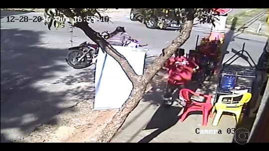 O vídeo mostra o momento em que a mulher e a criança foram atingidas pela moto desgovernada. Segundo a Polícia Militar (PM), após fugir da blitz, o condutor bateu em um carro e perdeu o controle da direção.