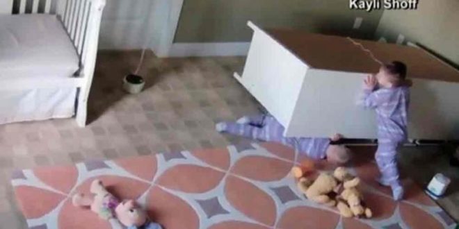 As crianças, chamadas Bowdy e Brock, estavam brincando de subir nas gavetas da cômoda quando o móvel tombou e Brock ficou preso. Browdy tentou empurrar e levantar a cômoda, mas não conseguiu. Ele então empurrou o móvel novamente e o irmão rolou para fora dele. Os dois estão bem.