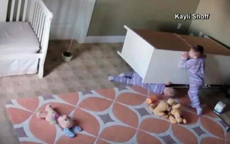 As crianças, chamadas Bowdy e Brock, estavam brincando de subir nas gavetas da cômoda quando o móvel tombou e Brock ficou preso. Browdy tentou empurrar e levantar a cômoda, mas não conseguiu. Ele então empurrou o móvel novamente e o irmão rolou para fora dele. Os dois estão bem.