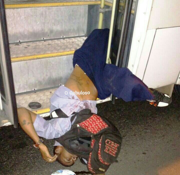 Ao perceber que o bandido estava morto, os passageiros pegaram a sacola que ele carrega nas costas e tiraram todos os pertences que foram tomados por ele durante o assalto.
