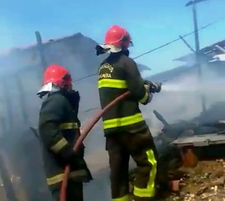 O barraco ficou completamente destruído, mas o fogo não atingiu as casas vizinhas, pois foi controlado pelos Bombeiros.