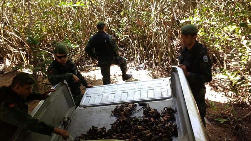 Os caranguejos-uça apreendidos foram soltos nos mangues da Capital.