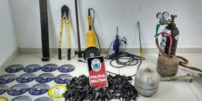 Fuzil, grampos, maçarico, botijões de gás, furadeiras, alicate, pé de cabra e discos de serra, estavam no interior do veículo