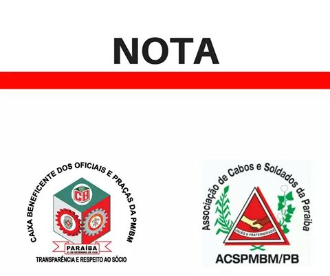 A Caixa Beneficente dos Oficiais e Praças da Polícia e Bombeiro Militar da Paraíba e a Associação dos Cabos e Soldados da Polícia Militar, em razão do anúncio da incorporação de valores na remuneração dos policiais e bombeiros nos próximos dias, vêm a público esclarecer e informar os seguintes pontos: