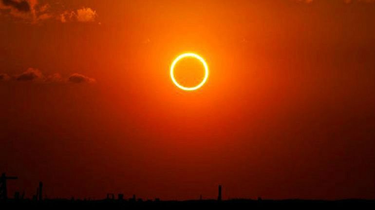 O primeiro eclipse solar de 2017 acontece hoje (26) e será transmitido, em tempo real, pela Nasa. O fenômeno será visto em uma estreita faixa que passa pelo sul do Chile e da Argentina, oceano Pacífico, oceano Atlântico e sul da África. Segundo o Observatório Nacional, o eclipse será anular, também conhecido como “Anel de Fogo”, ou seja, quando se vê todo o desenho do Sol e uma espécie de anel de luz ao redor.