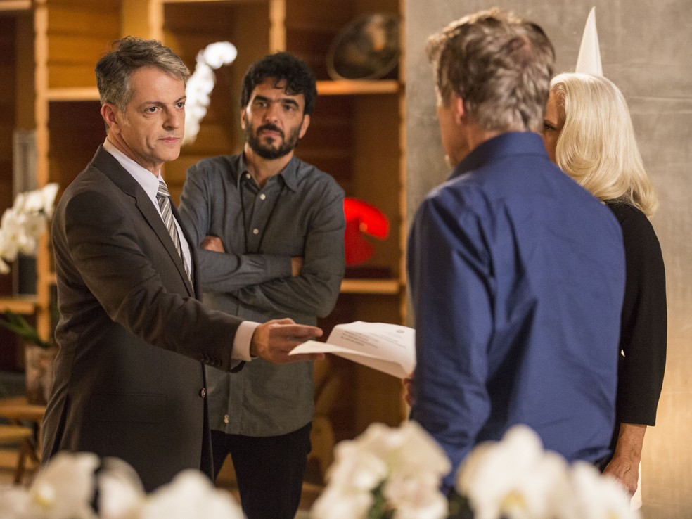Ao ouvir a confirmação, Celso avisa que o banqueiro terá que acompanhá-lo até a delegacia para dar um depoimento. “Esclarecimentos acerca do assassinato do jornalista Elio Bataglia (João Campos)!”, conta, deixando Tião surpreso. Mág, que usou a arma do marido para matar Elio, age naturalmente, como se não tivesse culpa de nada.