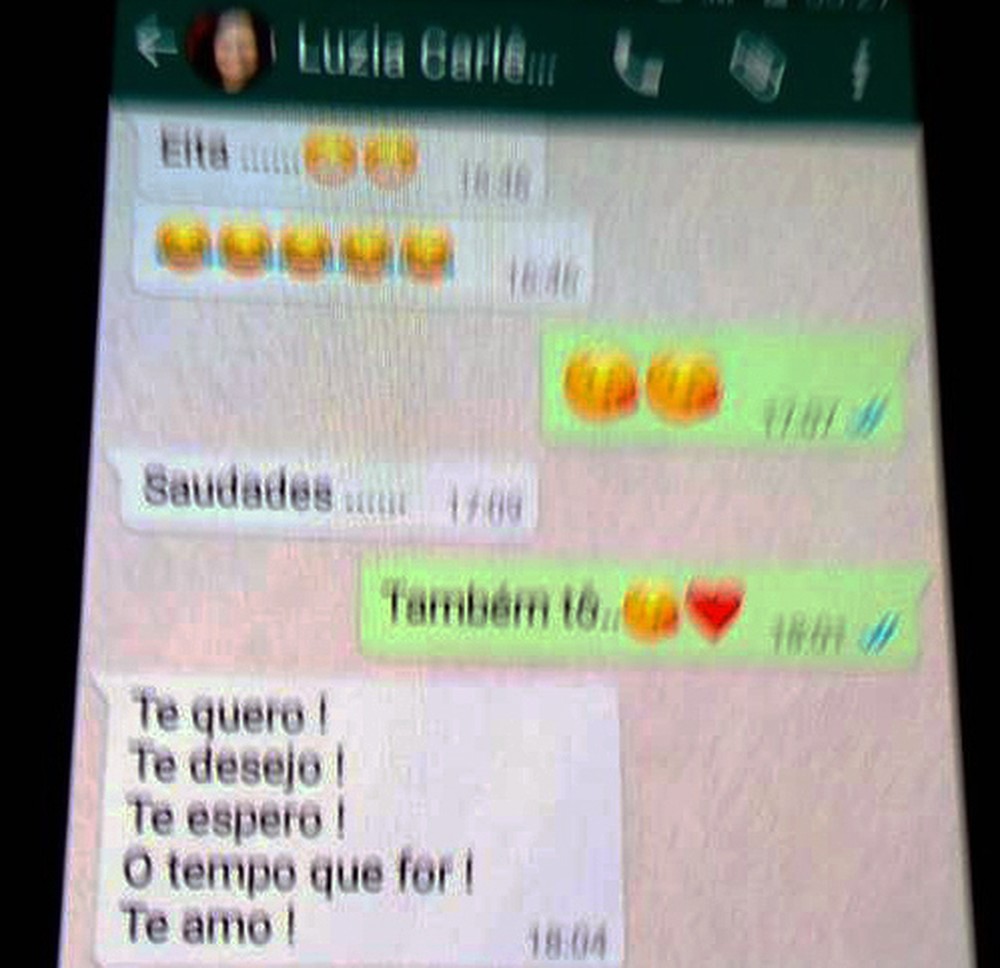 Parte das conversas entre Maria Luzianira e o amante foram obtidas com exclusividade pelo G1 durante a madrugada deste domingo (2). O casal aparece trocando várias juras de amor. Em uma das mensagens, enviada no dia 6 de março deste ano, a vítima fala sobre o último encontro do casal. “Amor, gostaria de te pedir desculpas se eu não consegui atingir suas expectativas”. Poucos minutos depois, o amante responde utilizando apenas a palavra “delícia”.