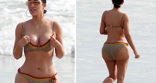 Home / ENTRETENIMENTO / KIM KARDASHIAN EXIBE BUMBUM ‘REAL’ EM PRAIA E INTERNAUTAS CRITICAM