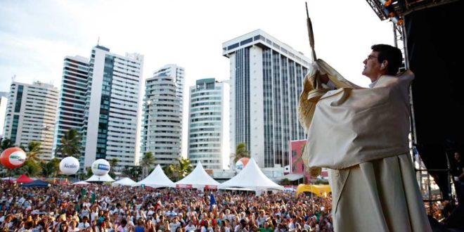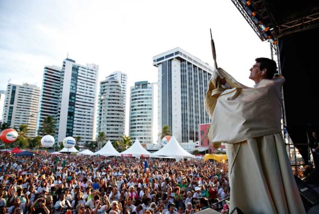Estrela principal do show católico “Evangelizar É Preciso”, que reuniu milhares de pessoas na praia do Pina, zona sul do Recife, nesta sexta-feira (21), o padre Reginaldo Manzotti carregou nas palavras durante sermão aos fiéis. Reclamando do que chama “obsessão pornográfica”, o sacerdote chegou a usar o termo “putaria”, provocando risos e até histeria do público presente.