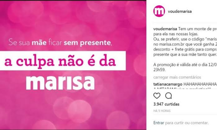 Com uma “indireta” bastante explícita, a loja ironiza e deprecia o ex-presidente ao dizer que “se sua mãe ficar sem presente, a culpa não é da Marisa”.