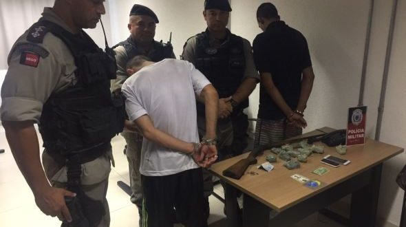 A Polícia Militar prendeu os dois suspeitos de tentar matar a tiros, no início da manhã desta terça-feira (16), o vigilante de uma escola, quando a vítima estava saindo do trabalho, no conjunto Cidade Verde, no bairro de Mangabeira VIII, na zona sul da capital. Ikro de Andrade Peres e Tales Edísio Maciel de Lima, de 19 anos cada, já foram alunos da escola em que a vítima trabalhava. Com eles, foi apreendida uma espingarda e várias trouxas de maconha.