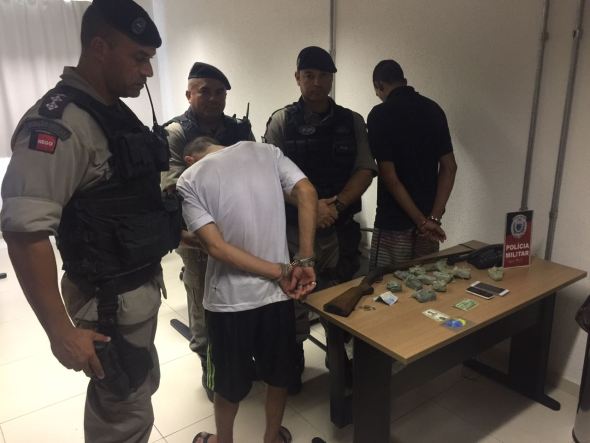 A Polícia Militar prendeu os dois suspeitos de tentar matar a tiros, no início da manhã desta terça-feira (16), o vigilante de uma escola, quando a vítima estava saindo do trabalho, no conjunto Cidade Verde, no bairro de Mangabeira VIII, na zona sul da capital. Ikro de Andrade Peres e Tales Edísio Maciel de Lima, de 19 anos cada, já foram alunos da escola em que a vítima trabalhava. Com eles, foi apreendida uma espingarda e várias trouxas de maconha.