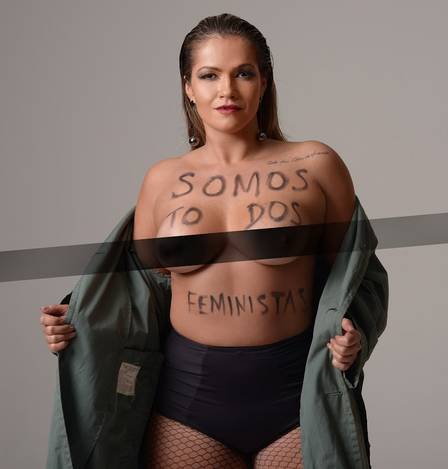 “Me inspirei na matéria da marca Dior, em que a estilista Maria Grazia apresentou um desfile voltado para a mulher do nosso tempo atuante e anticonformista. Me chama atenção também uma frase que estampava a camiseta de algumas modelos ‘we should all be feminists’, da escritora nigeriana Chimamanda Ngozi. Essa foto me inspirou a fazer a foto num momento importante da minha vida. Uma fase de mudança e quebra de padrões. Por que não escrever no meu próprio corpo nu e fora de forma (com 15kg a mais) uma frase que me inspira e me representa. Realmente penso que, sim, mulheres e homens querem direitos iguais”, explica a ex-BBB, que pesa atualmente 83kg.