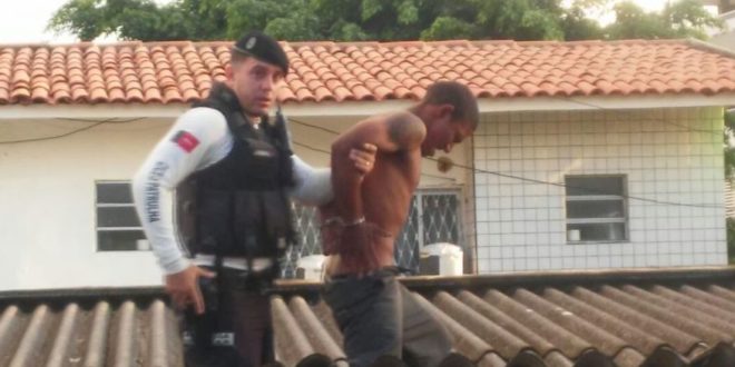 Ele foi preso por policiais da Companhia Especializada em Apoio ao Turista (CEATur) no telhado do Posto de Saúde da Família (PSF) do bairro, após perseguição que começou no meio da rua, onde ele abandonou um facão e o dinheiro levados dos crimes praticados na madrugada desta quinta-feira e tentou fugir.