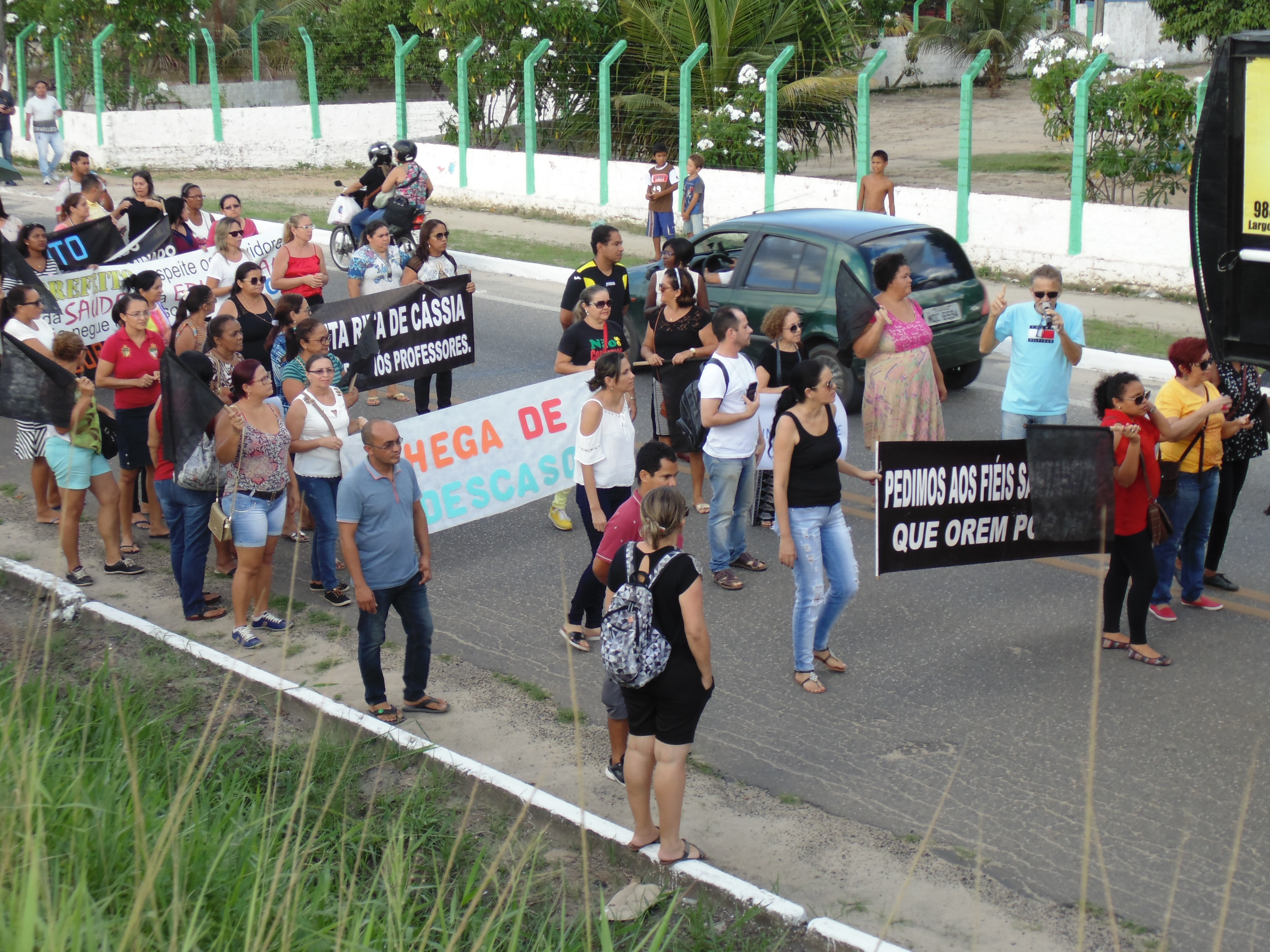 Protesto dos servidores de Santa Rita que começou na cidade, passou pelo distrito de Várzea Nova, segue agora à Granja Pantanal, residência do prefeito.