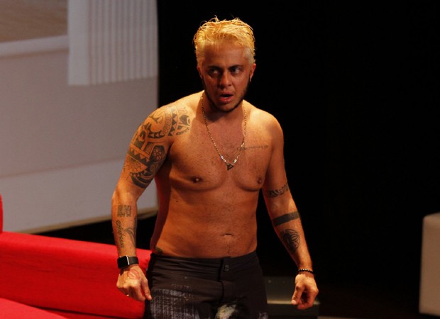 Em espetáculo, ator contracena com a namorada, Andressa Ferreira, e interpreta surfista