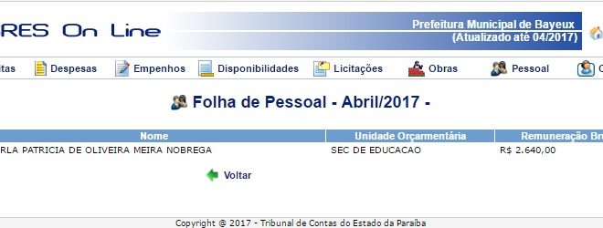 Na cidade de Bayeux, funcionária comissionada da prefeitura recebe salário, só que nunca aparece para trabalhar. Segundo uma fonte que não quis se identificar.