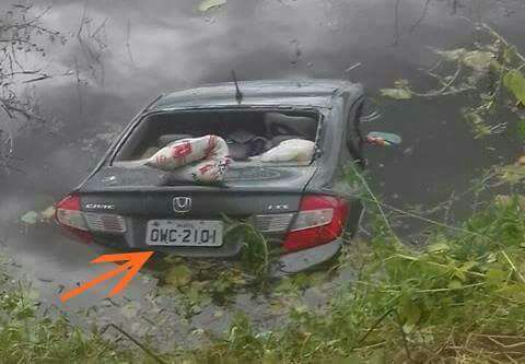 Segundo informações, um caminhão se chocou o veículo que acabou perdendo o controle, e após desviar de um buraco, caiu no açude.