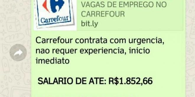 Os usuários do WhatsApp precisam ficar mais uma vez atentos. Um novo golpe no aplicativo promete participação em um falso processo seletivo da rede de supermercados Carrefour para infectar o celular da vítima ou realizar cobranças indevidas através de SMS.