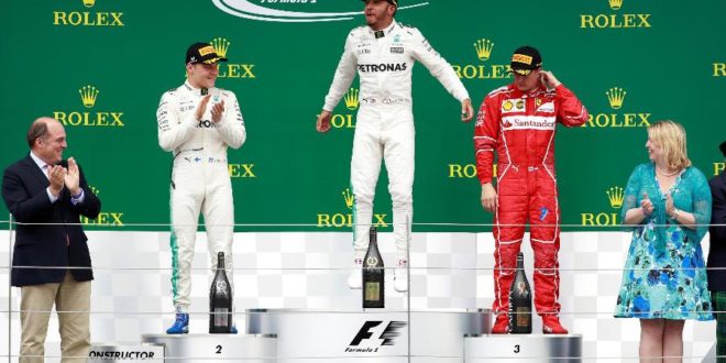 Ao contrário de Vettel, Bottas brilhou na Inglaterra, saindo da nona colocação no grid para fechar em segundo lugar. O finlandês veio galgando posições ao longo da prova, até superar Vettel no final, e contar com problemas nos pneus da Ferrari de Kimi Raikkonen, que era o segundo. O ferrarista, inclusive, ainda conseguiu trocar os compostos e completar a corrida no pódio, em terceiro lugar.