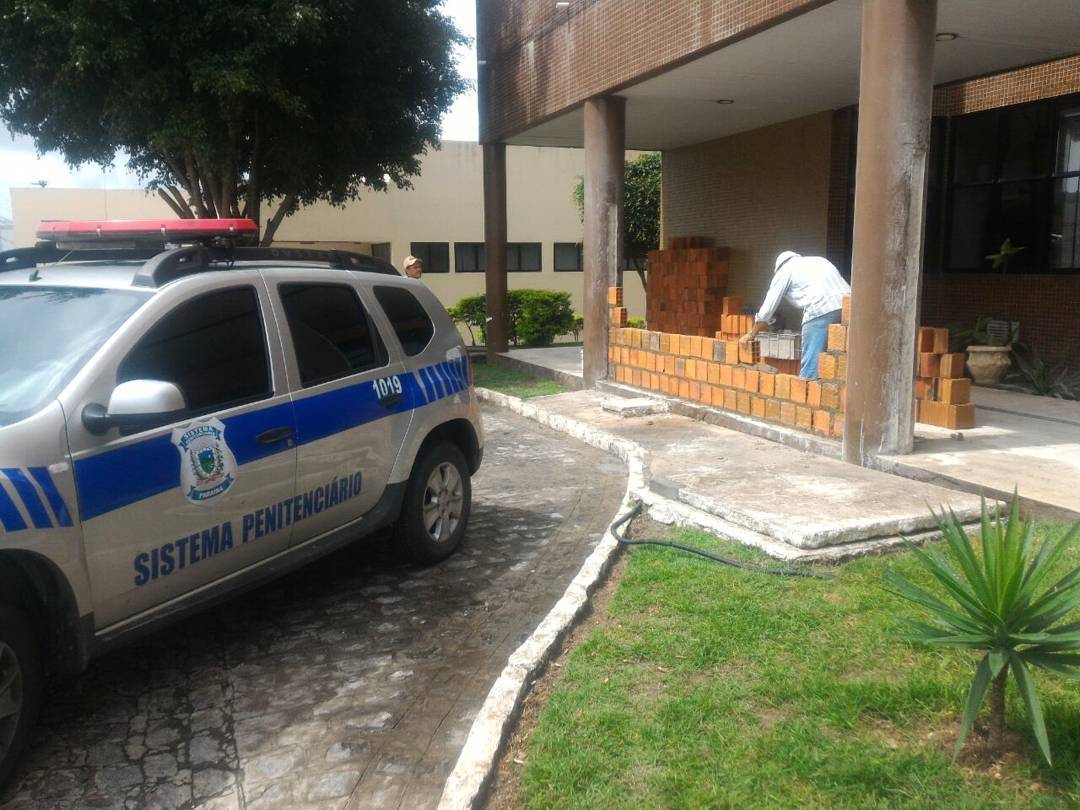 A obra está sendo executada no setor da carceragem do fórum, onde está sendo construída uma parede de proteção nas dependências da carceragem, que nesta reforma visa dar mais segurança aos Agentes Penitenciários, bem como demais membros da segurança pública.