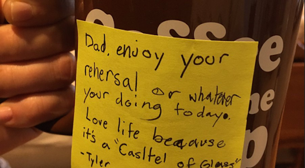 “Pai, aproveite o seu ensaio ou o que quer que você vá fazer hoje. Ame a vida, ela é um Castelo de Vidro – Tyler”, escreveu o filho caçula do músico em um papel de um bloco de notas colado na caneca do pai. Na legenda da imagem publicada pela mãe do garoto no Twitter, Talinda Bennington escreveu: “O nosso Tyler é o melhor, Chester Bennington”.