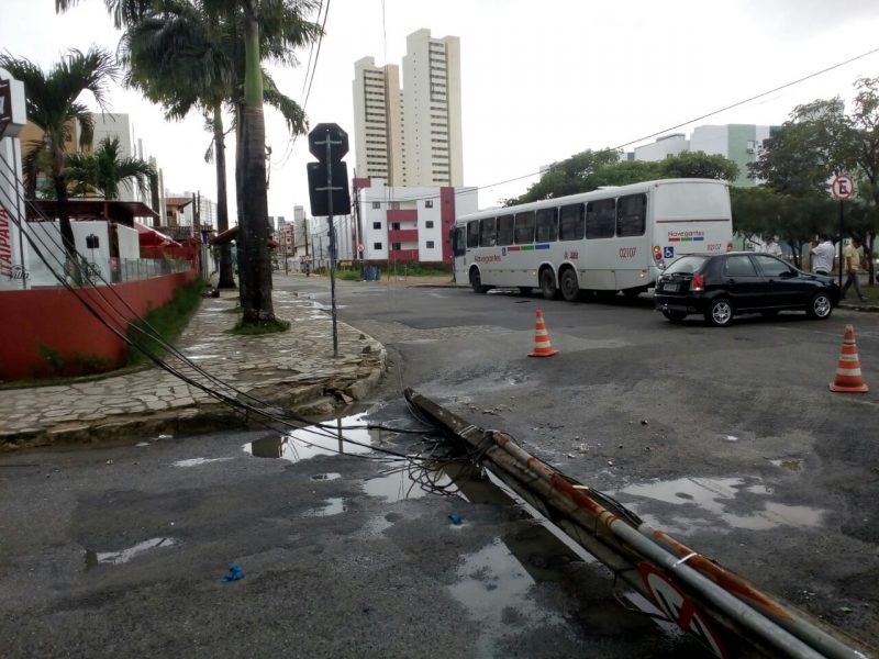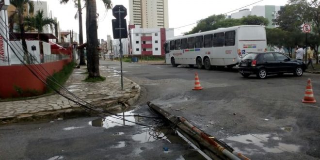 Um ônibus colidiu com um poste na manhã desta terça-feira (25) na rua José Firmino Ferreira, próximo a Faculdade Unipê, no bairro Água Fria, em João Pessoa.