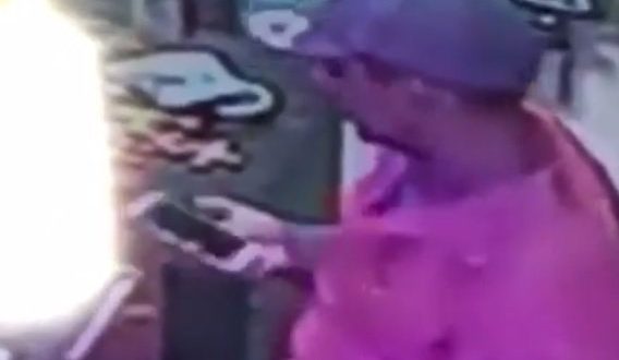 Após pegar o aparelho, ele o coloca no bolso e vai embora. A Polícia Militar já está de posse das imagens e procura o suspeito.
