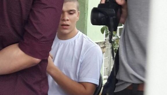 Home / POLICIAL / Vestido de branco e cabeça raspada, Yure Ramos suspeito de matar namorada participa de simulação do crime, em João Pessoa