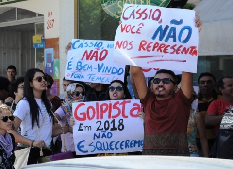 Falando em nome dos manifestantes, a professora Aline Mayara e o estudante universitário Gustavo Firmino, disseram que a sociedade não pode se calar diante dos fatos lamentáveis enfrentados pelo povo e em que o senador é parte ativa das manobras no poder executivo nacional, tais como retirada de direitos e o golpe que retirou a presidente Dilma Rousseff (PT).<