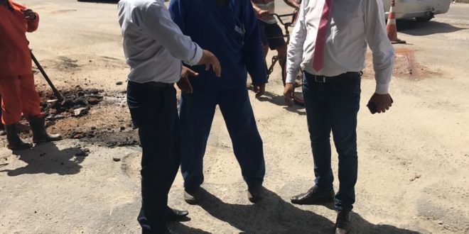 O deputado estadual Zé Paulo (PSB) e o vereador Adriano Martins (PMDB), estiveram fiscalizando a obra do DNIT.