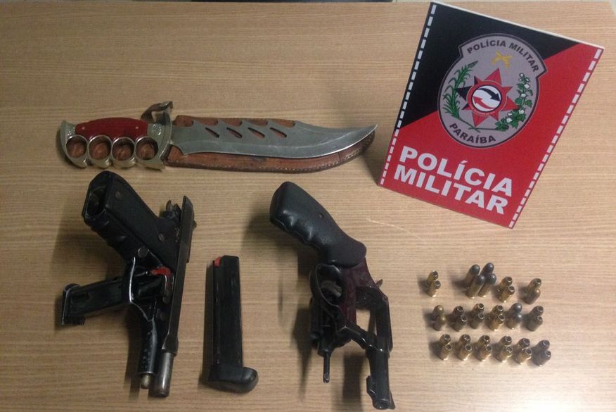 Dois homens foram presos em flagrante com um revólver e uma pistola, na noite dessa terça-feira (15), ao cobrar uma dívida utilizando as armas para intimidar a esposa do suposto devedor, no bairro de Paratibe, na zona sul de João Pessoa. Os suspeitos, de 39 e 22 anos, ainda chegaram a se identificar como policiais para a vítima, mas a PM foi acionada e policiais da Força Regional prenderam os dois em flagrante, após um cerco montado no local.