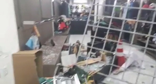 Imagens da câmera de segurança mostram a ousadia do grupo em derrubar as portas e a grade da loja em Tibiri, perto da Praça do Chafariz.