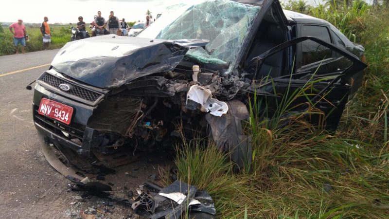 O acidente teria ocorrido após um dos veículos desviar da motocicleta que conduzia um reboque com tábuas de construção e bateu de frete com o outro carro.