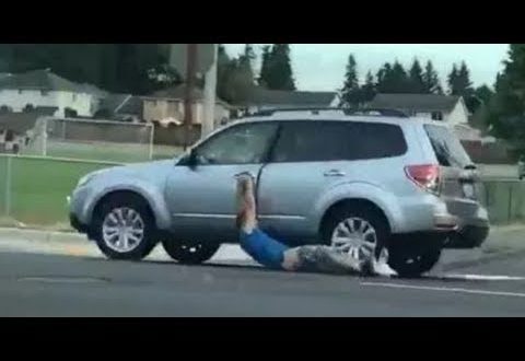 Aconteceu em Kent (estado de Washington, EUA). O criminoso tentou roubar um carro, mas o motorista reagiu. O ladrão acabou arrastado pela SUV.