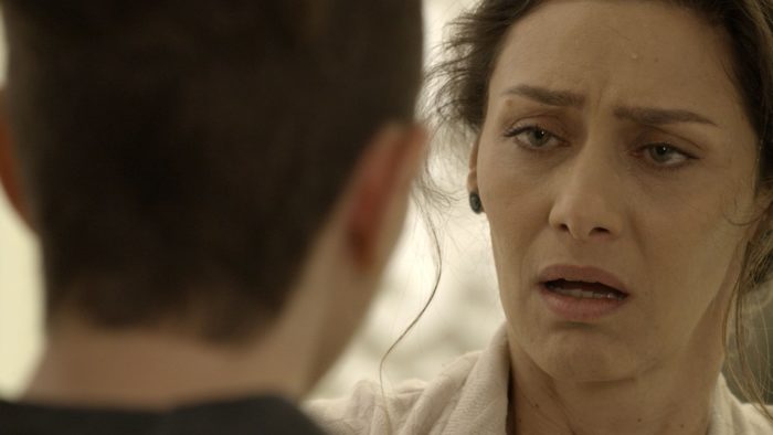 Ao retornar para a casa, a menina deixa Joyce (Maria Fernanda Candido) chocada ao aparecer de barba.