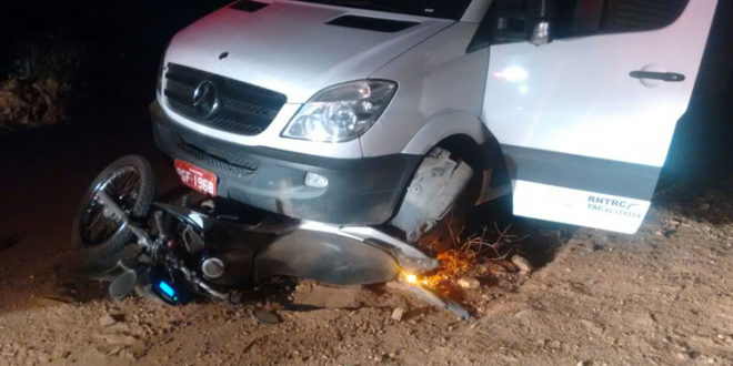 Ao perceber que se tratava de um assalto, o condutor do caminhão jogou o veículo de carga sobre a motocicleta.
