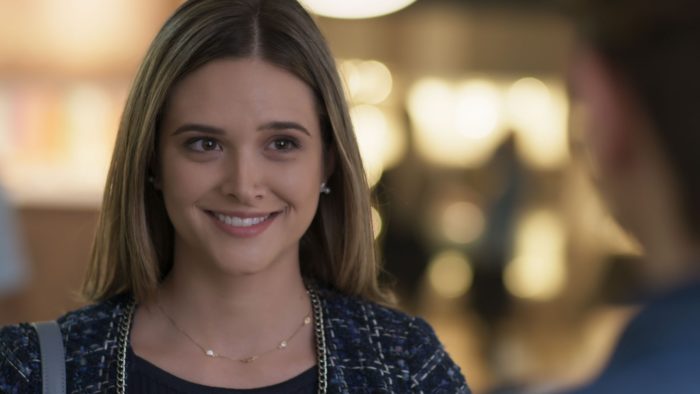 Simone (Juliana Paiva) se sensibiliza com o drama da prima e sugere que ela mude seu nome: