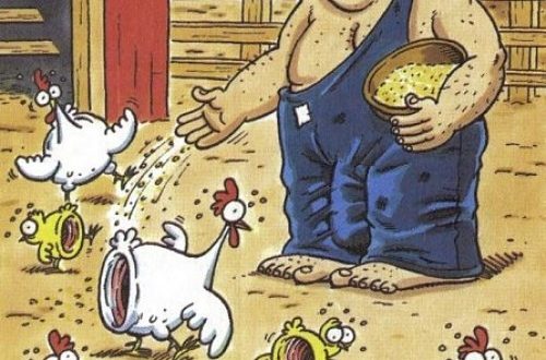 A ilustração mostra as aves com as cloacas ‘violentadas’, insinuando a atividade sexual entre o granjeiro e as galinhas, já que o órgão sexual do produtor rural figura em destaque embaixo das calças.