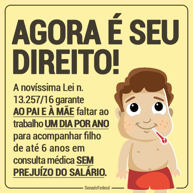 De acordo com a publicação na página no Facebook do Senado Federal, tanto o pai quanto a mãe tem esse novo direito garantido.